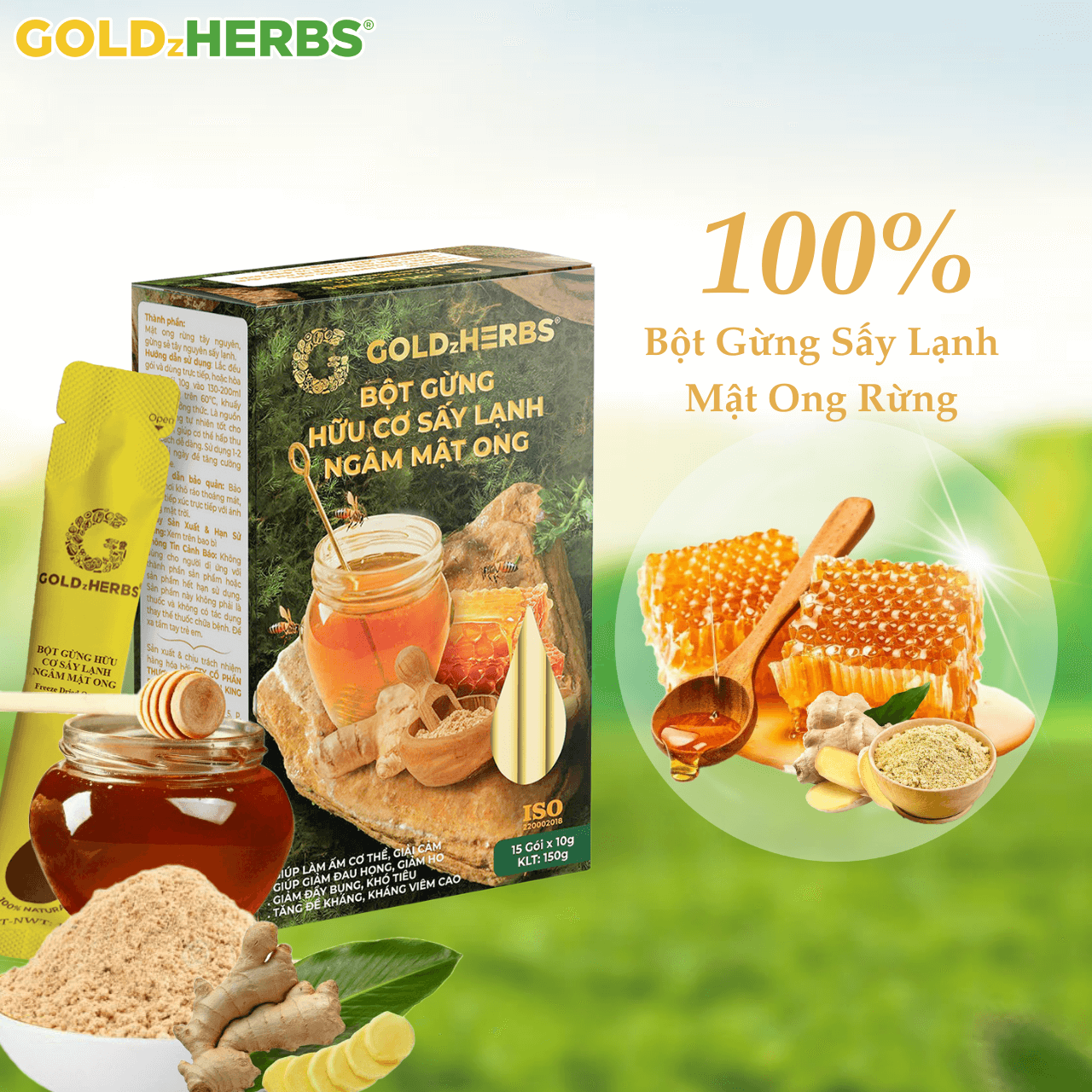 Bột Gừng Hữu Cơ Sấy Lạnh Ngâm Mật Ong Goldzherbs